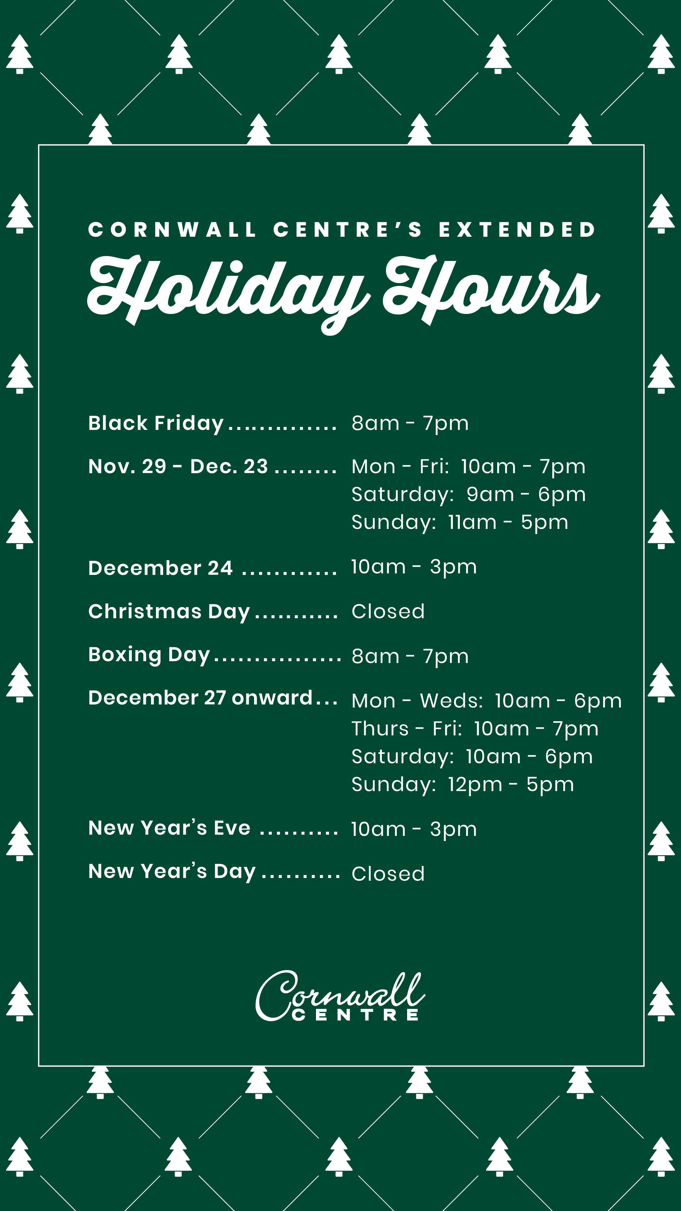 Tis' the Season at Cornwall Centre! We love celebrating the holidays with you at Cornwall Centre! From our 40ft Tree to Santa Visits and Holiday Shopping, our Holiday Hub is the place for you to find all the information you need for your visits this holiday season!
